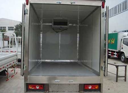 6.6萬福田寶瑞-5度冷藏車現車銷售中,BJ5046XLC-A1型福田寶瑞冷藏車采用安徽全柴82馬力柴油發動機,油耗低,動力足。采用寶瑞1車身,1640寬單排駕駛室,5-20變速箱,3噸后橋,6.00-15輪胎,鉚接140車架,電控熄火,暖風,廂體采用內外玻璃鋼板材制作,厚度5cm,中間聚氨脂發泡,真空負壓,廂體底部是鋁合金防滑花紋板,廂體外部鋁合金包邊,主要適合城市運輸,滿足超市、食品經銷商,防疫部門,醫藥公司的貨物配送,小型冷藏車首選!6.6萬福田寶瑞K1冷藏車圖片展示: