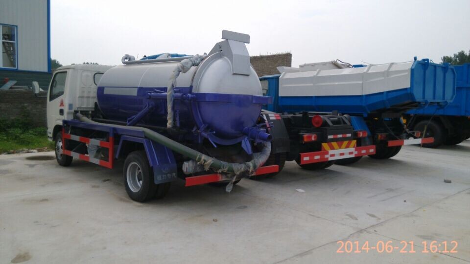 江淮威鈴系列清洗吸污車(清水罐3.3立方,吸污罐3立方)產品特點,吸污車是收集,中轉清理運輸污泥,污水,避免二次污染的新型環衛車輛,吸污車可自吸自排,工作速度快,容量大,運輸方便,適用于收集運輸糞便,泥漿,原油,下水道內的淤積物的抽吸,裝運和排卸,尤其是可吸下水道泥漿,淤泥,石子,磚塊等較大物體。