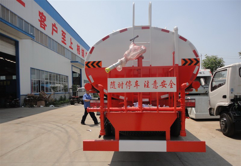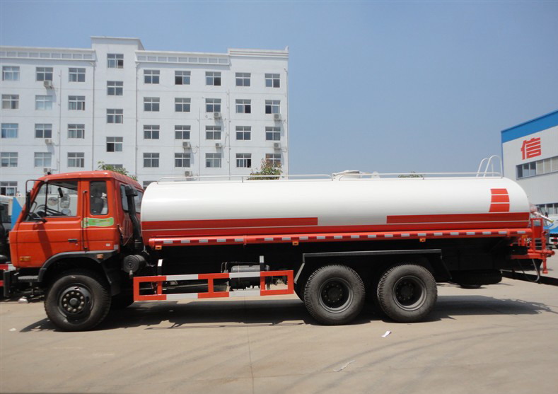 東風后雙橋20噸灑水車帶前噴后灑,側噴,尾部工作平臺帶高炮。帶灑水車專用泵齒輪泵,可以自吸自排水,灑水車罐體結構,罐體為橢圓形或方形,用鋼板制成,整車罐體水倉為 2-3 室,中間隔板下端有通孔,倉內隔板具有防波作用。以減低汽車行駛時罐內液體的沖擊。外表涂防銹漆及裝飾漆。