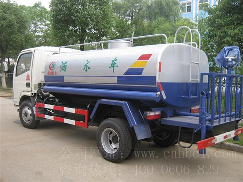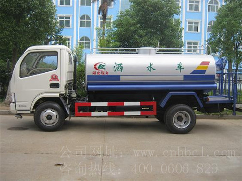 程力專用汽車股份有限公司生產的東風銳鈴國四灑水車,罐體容積可達到5平方米,可以拉5噸的水,輪胎為鋼絲胎,采用的是東風輕型102馬力的發動機。東風銳鈴灑水車,適合于各種路面沖洗,樹木、綠化帶、草坪綠化,道路、廠礦企業施工建設,高空建筑沖洗。具有灑水、壓塵、高、低位噴灑,農藥噴灑、護欄沖洗等功能。工作原理主要由發動機帶動變速箱,變速箱上安裝的取力器帶動灑水泵,灑水泵產生動力,將罐體內部的液體通過管網噴灑出去。