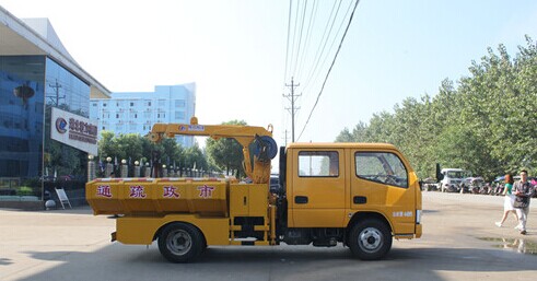 程力專用汽車股份有限公司生產銷售的東風小霸王抓斗式窨井清淤車采用東風公司底盤改裝而成,通過發動機取力而實現液壓抓取窨井中的淤泥的目的,抓斗容積達0.4m³,可360°旋轉,下井深度≥12m,采用自卸式秘方貨廂,卸淤靈活方便,提高了使用效率和安全性,徹底改變了傳統的人工井下清淤的歷史,是城市市政、小區、工礦企業清理窨井沉淀物的最理想設備。