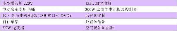 日產(chǎn)房車標(biāo)準(zhǔn)配置: