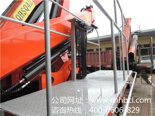 A、后置隨車吊通常安裝在車輛的尾端,在吊機操作的位置會有一個站立的操作平臺,所有的操作桿是在操作平臺上,相對來講就可以實現“盲角”的大范圍減少。