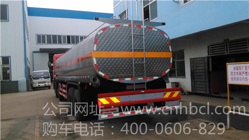 國四東風(fēng)天龍前四后八不銹鋼運水車罐體容積31立方,采用304不銹鋼制作,國標(biāo)5mm厚,灌頂前后兩個不銹鋼罐口,中部及尾部各一個3寸自流口,中部自流口大梁外伸23厘米,裝不銹鋼球閥,14厘米方法蘭。罐體內(nèi)部橫5道防浪板豎1道防浪板, 罐頂設(shè)走道及尾部爬梯.
