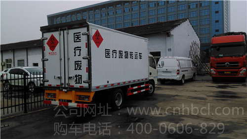 3、醫療廢物運輸車廂體前、后和兩側設有醫療廢物專用和警識標識。駕駛室兩側噴涂醫療廢物轉運單位名稱。