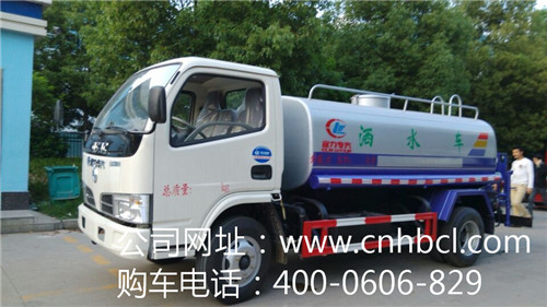 國四東風小多利卡灑水車罐體容積5.09方,罐體采用國標碳鋼鋼材制作,罐體帶前噴,后灑,尾部帶工作平臺,平臺帶高炮。同時可以用于臨時應急消防灑水,每輛灑水車都配備消防專用接口。由發動機帶動變速箱,變速箱上安裝的取力器帶動灑水泵,灑水泵產生主要動力,將罐體內部的液體通過管網噴灑出去。自吸高度:≤7m,灑水寬度:≥20m,最大射程:≥28m;可調節成柱狀,射程≥28m;也可調節成霧狀,射程≥5m。整車外形圖片展示如下: