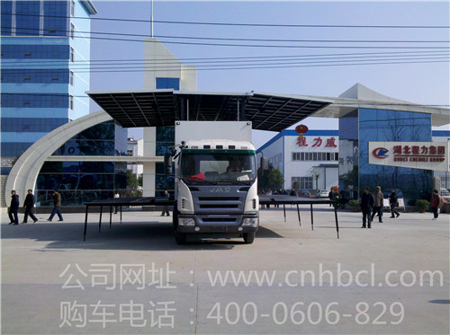 展開說明:舞臺一面展開,頂部可以升高1.3米,內藏式舞臺板,車頭及車尾各加一塊音響平臺,及廣告屏風,4.2米廂體,配舞臺梯一部 |