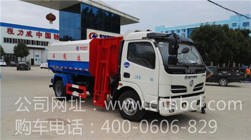8方東風(fēng)勁能側(cè)裝掛桶式垃圾車?yán)淙莘e8方,采用武鋼國標(biāo)碳鋼板制作,邊3mm,底4mm厚度,廂體右側(cè)掛桶提升裝置一套,通過液壓系統(tǒng)操作,可自動(dòng)上下提升,傾倒垃圾桶內(nèi)垃圾,后門手動(dòng)鎖緊方式打開,自卸方式卸料,可通用全國各型號(hào)鐵掛桶。