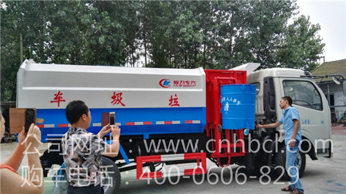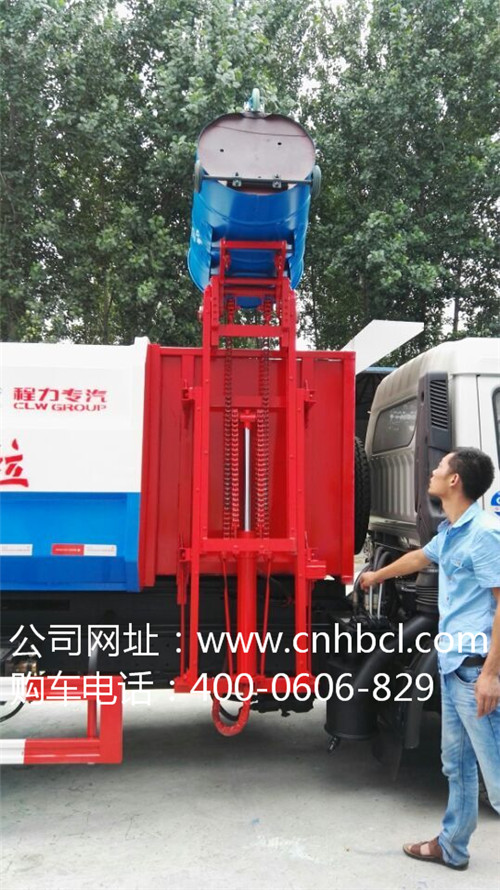 掛桶式垃圾車正在往垃圾車中倒垃圾車如圖上圖