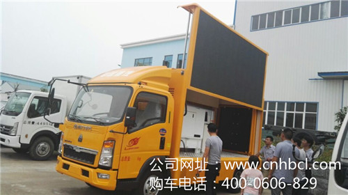 國四重汽豪沃LED廣告車專用部份配置:左面P8全彩屏尺寸3840*1792,帶舉升帶支腿,右面滾軸加條屏,尾部單紅屏尺寸1280*14480,5cm復合鋼架箱體,外冷扎鋼板內鋁板,高檔鋁花紋地板,帶裙邊工具箱,室內配照明燈,機電一體化控制,循環通風降溫系統,安全智能內外網配電切換系統,臺式電腦,防水音響4個,功放一臺,8千瓦歐瑪靜音發電機組,另該車可接市電220V,其它標配。