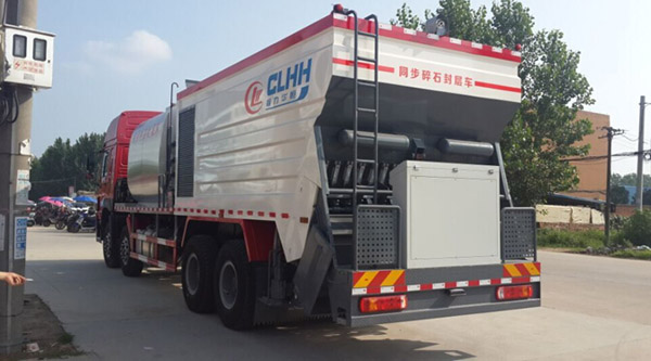 作為2015年新款瀝青碎石同步封層車,CLW5310TFCZ4型瀝青碎石同步碎石是由我公司自行研制開發(fā)設(shè)計,具有自主知識產(chǎn)權(quán)的同步碎石封層機,該機是在同型號同步碎石的基礎(chǔ)上做了改進,使之能在更惡劣的條件中施工作業(yè),增強了設(shè)備運行穩(wěn)定性。達到了機、電、液合一化操作,設(shè)備操作工序得到簡化,操作簡單,整機技術(shù)性已達到世界先進水平。程力華恒CLW5310TFCZ4這款設(shè)備根據(jù)不同的工作需求給操作人員提供準(zhǔn)確的灑布參數(shù)。通過后操作臺上顯示屏參數(shù)的設(shè)定,實際測量參數(shù)不斷的改變能準(zhǔn)確的反應(yīng)出設(shè)備的運行情況。手動操作簡單,能實現(xiàn)手動/自動的切換,提高了工作效率。能根據(jù)路面的寬度隨意調(diào)整噴灑瀝青、撒布石料的寬度。采用限位開關(guān)裝置,對噴頭架、料倉升降的進行控制,避免超程使人機受到傷害。配置導(dǎo)熱油自動報警裝置,具有料位上限、下限報警,瀝青下限報警指示功能。
