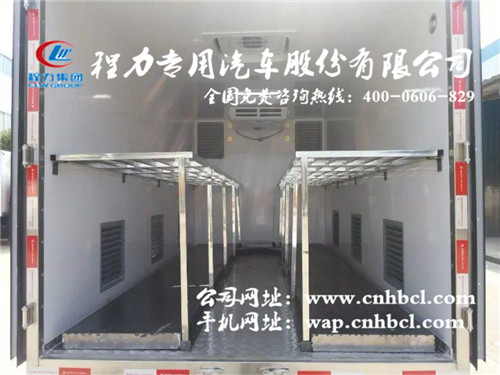 雛禽運輸車(雞苗運輸車)的主要特點有防雨,防曬、防塵、防盜、環保、運輸效率高等,更具有通風、保溫、裝載量大等特性。 制冷機組可選用國產和進口冷機組,制冷量大,流線型超輕冷凝器,更安全,更美觀。超薄平型蒸發器,可加大貨物裝載空間。 而且能夠自動控溫。