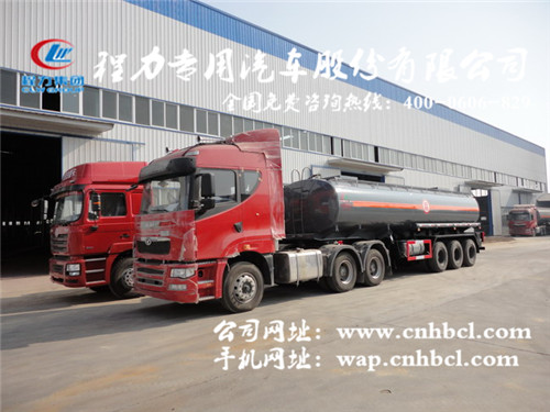 鋁罐是運裝液體硝酸的最佳選擇。不銹鋼罐適用范圍較廣,但成本較高。本公司技術力量雄厚,可根據用戶要求設計、制造出用戶滿意的產品。下面是程力專用汽車股份有限公司現有化工液體運輸車,危險品運輸車公告: