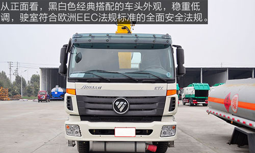 福田歐曼ETX10噸隨車吊秉承了歐曼重卡一貫的高大威猛車身造型,霸氣側(cè)漏,彰顯了歐洲重卡的陽剛之氣。整車外形尺寸為12000mm×2495mm×3820mm。