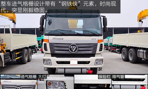 整車進(jìn)氣格柵設(shè)計(jì)帶有“鋼鐵俠”元素,時(shí)尚現(xiàn)代,突顯剛毅穩(wěn)固,進(jìn)氣格柵中間鑲有福田公司專用logo,動(dòng)感十足。整車大燈置于保險(xiǎn)杠兩邊,低角度照明加大安全行駛,保險(xiǎn)杠中間有拉鉤,用于牽引車輛,黑漆封釉,若隱若現(xiàn)。保險(xiǎn)杠下方是發(fā)動(dòng)機(jī)排氣管,采用前置式結(jié)構(gòu),更安全。