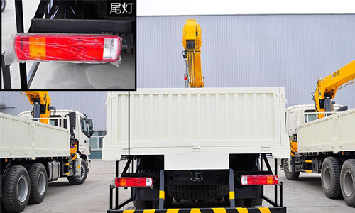 整車尾部安裝有突出來的工字梁防護(hù)欄,更好的保護(hù)車尾部,防護(hù)欄內(nèi)左右兩邊安裝有加長版警示尾燈,進(jìn)一步加強(qiáng)安全行駛。