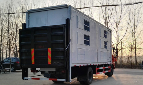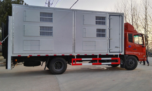 貨廂7長東風畜禽運輸車:廂體內部分兩層陸間,側開通風窗,廂體帶自動噴水降溫系統,頂板電子通風系統,頂板用保溫板制作冬暖夏涼滿足運輸需求,二層液壓板升降系統裝卸更方便快捷,全方位溫度監控系統讓您全面掌控,駕駛室空調,ABS,行車記錄儀等高配置讓您使用無憂。