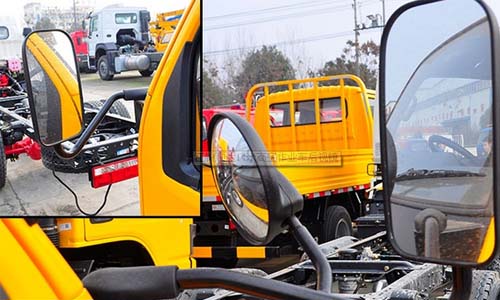 長條寬大型后視鏡配合矮門窗設(shè)計(jì),有效的增大了駕駛室員的視角范圍,保障了行車安全。
