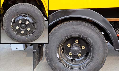 整車配備尺寸為700R16LT的鋼絲胎,較普通的尼龍?zhí)ザ猿休d能力更強(qiáng),安全系數(shù)更高一些。