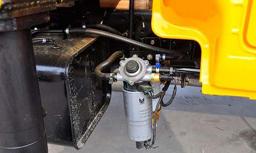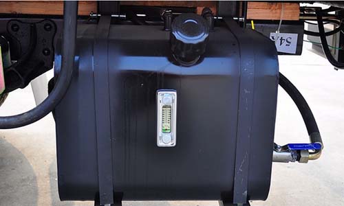 液壓油箱加裝在車輛一側(cè),為上裝液壓部件工作提供了足夠的原動(dòng)力,油箱上還有一個(gè)溫度顯示儀,標(biāo)有攝氏度和華氏度兩種顯示刻度,方便用戶掌握情況。