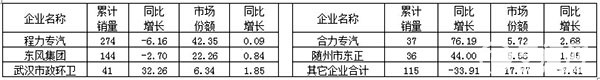 前五位中余下的武漢市政環(huán)衛(wèi)、合力專汽、隨州市東正三家公司,銷量則在100臺(tái)以內(nèi),但相對(duì)來說都在增長,較前兩位的同比增長幅度來說要高很多。
