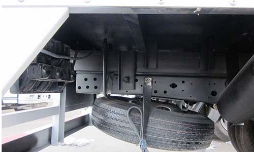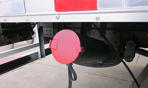 導(dǎo)靜電拖地帶,固定在大梁尾部,由導(dǎo)電橡膠帶、固定件、調(diào)節(jié)裝置及配重件組成,為車輛的行車安全提供最基本的保障。