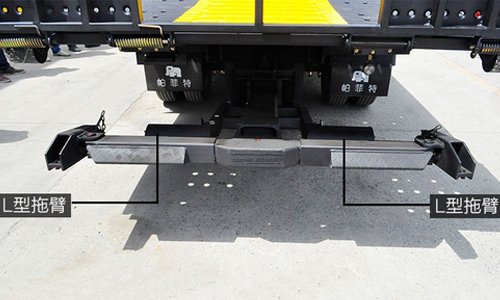 除了平板可全落地進行背車作業(yè)外,還有后托臂對事故車輛托舉升高后進行牽引的功能,后托臂可通過液壓油缸自由伸縮與升降,形成一輛清障車就能同時一背一拖2臺車的工作模式。平板采用四塊3.5mm瓦楞沖壓板焊接,平板標準長度為5.6米,寬2.3米,加密橫梁,尾部增加縱、橫梁交叉焊接,防止平板塌陷,板面還進行有磨砂處理,增加板面摩擦力。除了標配的雙位操作閥以外,還有遙控一鍵控制平板上下滑、托臂伸出/縮回工作,機械化操作,工作效率更高。