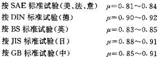 由于各國發動機臺架試驗所執行的標準值不同,故修正系數的取值亦不同,如下所列: