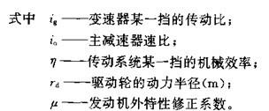 專用汽車在地面行駛時受到發動機的限制所能產生的驅動力與動機輸出轉矩的關系為:
