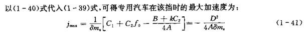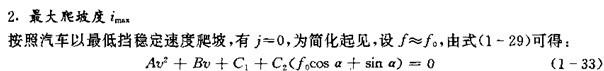 式(1-27)是汽車直線行駛時的驅動力和行駛阻力的平衡方程式,式(1-29)則反映了汽車在克服了外界其它阻力之后所具有的加速能力,由此可計算出評價車輛的動力性指標。