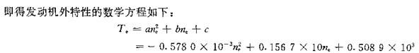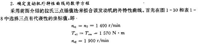 1、已知外特性曲線時,根據外特性數值建立外特性方程式,如果已知發動機的外特性,則可利用拉格朗日三點插值法求出公式(1-13)中的三個待定系數a 、b、 c、。在外特性曲線上取三個點即,依拉氏插值三項式有: