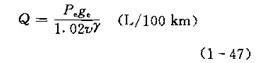 (4)由公式(1-47),可計算出該車速時的百公里油耗Q。