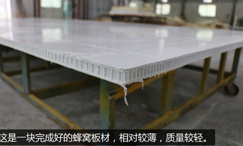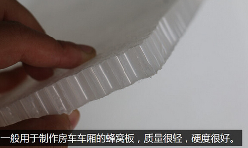在兩層玻璃鋼中心還填充了一層資料,當前常用的有兩種:一種是多用于房車的蜂窩板,它的特點是質(zhì)量較輕、保溫隔熱作用好,據(jù)工廠人員介紹,這種板材的車廂在香港用的比較多。