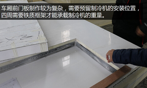 通常情況下,組合成一臺完結(jié)的冷藏車廂需求用到除了后門外5塊板材,假如需求側(cè)門的話再加一塊,報價增加2000塊擺布。在這些一切板材中,車頂和底部以及擺布兩側(cè)的略微簡略,車前以及后門較為復雜。車前是因為需求預留方位來裝制冷機,因此車前板需求預埋契合冷機巨細的鐵質(zhì)框架。