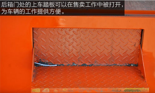 后箱門處的上車踏板可以在售賣工作中被打開,為車輛的工作提供方便,采用優(yōu)質(zhì)鋼板經(jīng)過加厚處理制作而成,保證了上車踏板的承載能力和安全性。