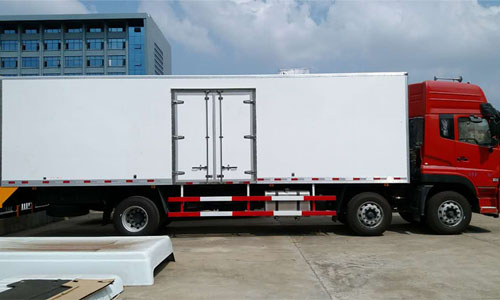 東風(fēng)天龍小三軸9.5米冷藏車采用高頂雙臥駕駛室,整車型號(hào):CLW5250XLCD4,底盤型號(hào):DFL1253AX1A,整車尺寸(mm):11990*2550*3990,廂體尺寸(mm):9400*2300*2400,國(guó)四柴油東風(fēng)康明斯發(fā)動(dòng)機(jī)220馬力,冷藏保溫廂體采用聚氨脂泡保溫層,門框、門飾件全部使用不銹鋼,加裝側(cè)門,加裝底板不銹鋼通風(fēng)槽,安裝制冷機(jī)組,溫度達(dá)到零下5度,其余標(biāo)配。