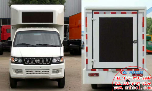 凱馬國五LED廣告宣傳車標準配置:主駕駛側為全戶外高清防水車載防震全彩屏,副駕駛側為數字滾軸燈箱外加鋼化玻璃,加單色條屏,5CM符合鋼架廂體,高檔木質內飾:廂體為圓弧形或直角形鋼骨架結構,地板鋁花紋板,機電一體化控制,循環通風降溫裝置,安全智能內外網配電切換系統,歐瑪靜音柴油發電機組,千兆媒體控制系統,防震工控電腦一臺,功放一臺和防水音柱四臺。