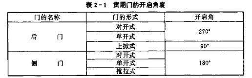 車廂一般設(shè)置后門,這樣有利于貨物的裝卸和交通安全。對(duì)于較長(zhǎng)車廂還應(yīng)考慮增設(shè)側(cè)門。對(duì)于不便或不能打開門的場(chǎng)合,可利用側(cè)門進(jìn)行裝卸作業(yè)。