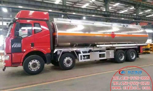 解放前四后八鋁合金油罐車上裝配置:罐體通倉采用鋁合金5182厚7mm、筒體厚6厘、隔板厚5mm。2個歐標罐口,1個海底閥。整套歐(罐中間出料,下裝油,油氣回收)。附件:碳鋼后保險桿,鋁合金副件(活動護欄,1個工具箱,出口箱,側(cè)護欄,防滑走道,后爬梯不銹鋼炮筒)。泵進泵出。2個4kg滅火器,3塊告示牌。本色表面拋光打蠟,3M反光帶,條,<爆>字。