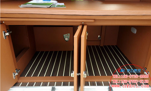 后置雙人床底下是兩個儲物柜,可以放些旅行用的生活用品,地板同樣是采用游艇木,檔次提高不少。