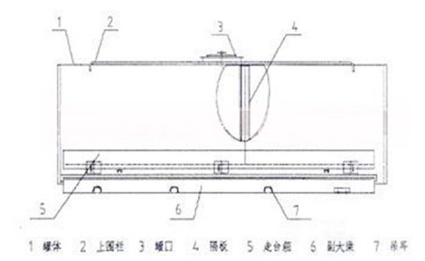 5、罐體(附圖一):水罐結構為橢圓柱或梯形體,用優質鋼板制成,整個罐體分單倉或多倉,倉內可分室,中間隔板下端有通孔,每倉之間焊有分倉加強防波隔板,以減輕汽車行駛時罐體內水的沖擊和提高罐體的強度。為了防止銹蝕,罐體外表涂防銹漆及裝飾漆。