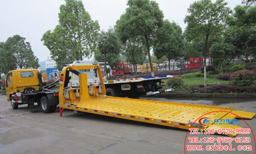 慶鈴五十鈴全落地一拖二清障車藍牌平板拖車售價,東風多利卡一拖二清障車:朝柴120馬力,中冷增壓,4102發動機,方向助力,五檔東風公司原廠大禮包,及隨車工具;改裝配置:LED燈壹個,雙輔助小輪壹套,綁帶肆根,L型拖叉壹對。配置使用手冊,說明書,底盤合格證,整車合格證及上戶發票。(現貨)平板長5.6米,寬2.3米,平板托4噸,后托臂托舉1.9噸。