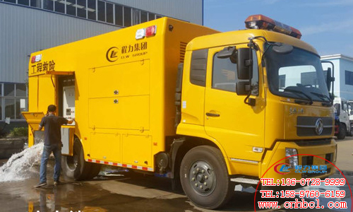 設備采用東風底盤改裝,總質量12.5噸,發動機功率127kw,排放標準達到國五標準,3.8米軸距,帶空調,方向助力,最大涉水深度600mm。 發電機備用功率120kw,額定輸出功率110kw,額定頻率50HZ,額電壓230/240V,康明斯發動機。電子調速,啟動電瓶,電瓶總閘。 車廂內專設接地樁頭,連接方便,在機組工作時,連接接地線,保護作業安全。機電設備有嚴密的防漏電保護措施。