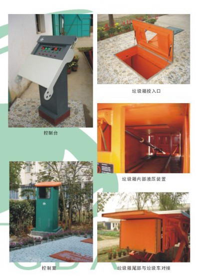 2、 使用操作簡易。家庭或辦公室袋裝垃圾以及手推車轉運的垃圾均可以方便地從垃圾箱頂部的投料口投入箱內。垃圾在箱內的處理由PLC編程控制電氣系統和液壓系統自動完成。