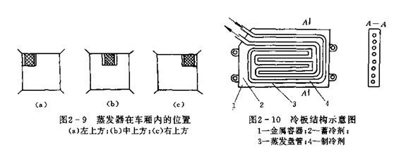 蒸發器一般布置在隔熱車廂內前壁中上方,但也有根據需要布置左(右)上方的,如圖2-9所示。