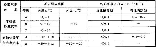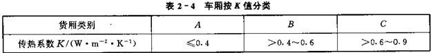 表2-3冷藏汽車廂內調溫范圍與總傳熱系數K