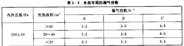 按漏氣倍數的不同,車廂也可分為A、B、C三類,并規定冷藏汽車不得采用C類車廂,各類車廂的漏氣倍數見表2-5。