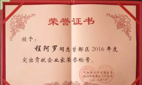 會(huì)上,程力集團(tuán)作為隨州市的龍頭企業(yè),納稅大戶(hù),市委市政府對(duì)程力集團(tuán)為地方經(jīng)濟(jì)和社會(huì)發(fā)展建設(shè)所做的杰出貢獻(xiàn)給予了高度肯定和表彰,程力公司被市委、市政府授予2016年度“突出貢獻(xiàn)企業(yè)”大獎(jiǎng),總經(jīng)理程阿羅也被市委、市政府,區(qū)委、區(qū)政府雙雙評(píng)為2016年度“突出貢獻(xiàn)企業(yè)家” 榮譽(yù)稱(chēng)號(hào)。