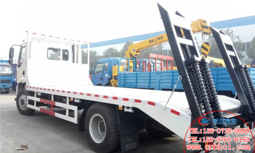國五東風柳汽平板運輸車上裝配置:整車上戶噸位7.865噸,軸距5100mm,貨廂平板尺寸為5900-6700mm×2500mm,平板上平面離地高度為1000mm,可承載的挖機型號為60#、65#、70#、80#、85#、90#、135#、150#、180#。最達承載18噸。