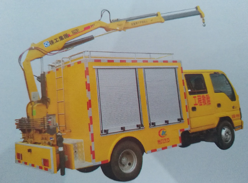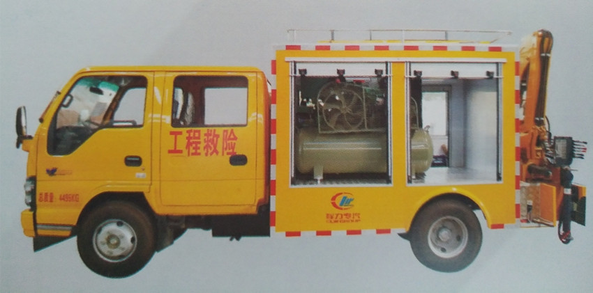 程力專用汽車股份有限公司研發生產的工程救險車采用慶鈴QL1040A5HWY雙排座底盤實際承載7噸,駕駛室準乘5人,為藍牌車,是我公司針對機場,公路,市政,供水,熱力,燃氣,石油,化工等行業的管網,管道,路面的快遞搶險,搶修作業開發的專用車。